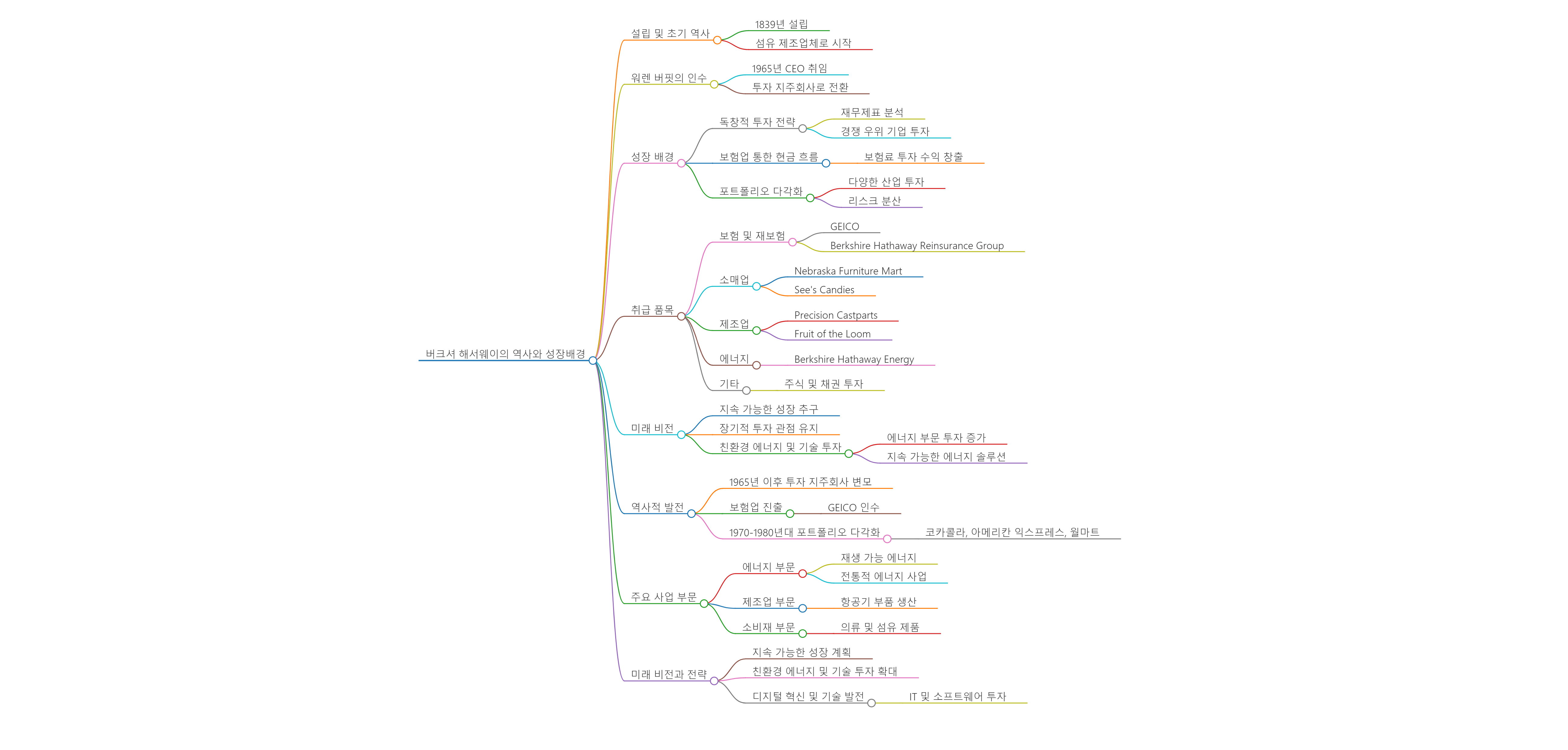 버크셔 해서웨이는 1839년에 설립된 미국의 다국적 지주회사로, 처음에는 섬유 제조업체로 시작했습니다. 설립 초기에는 드레이퍼리 모슬린과 셔츠용 직물 등을 생산하며 성장하였으나, 20세기 중반에 들어서면서 워렌 버핏이 회사를 인수하게 됩니다. 버핏은 회사를 투자 지주회사로 전환시키며, 다양한 산업에 걸쳐 여러 기업을 인수하기 시작했습니다.