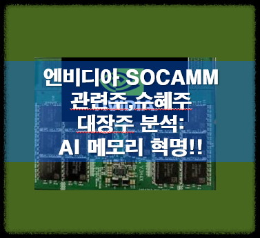 엔비디아가 개발 중인 SOCAMM(System on Chip Advanced Memory Module) 기술이 메모리 시장에 혁명을 일으킬 전망입니다. 이 새로운 메모리 표준은 AI 컴퓨팅과 데이터 센터 성능을 획기적으로 향상시킬 것으로 기대됩니다. 국내 기업들의 참여로 주목받고 있는 SOCAMM 관련 산업과 수혜주들을 심층 분석해 보겠습니다.