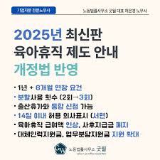 - 단기 육아휴직제도 도입: 기존 30일 이상에서 2주(14일)로 변경됩니다.