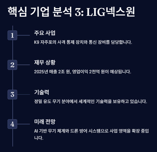 | LIG넥스원(079550) | 2.1조 원(+67%) | 12.3% | 천궁-II 미사일 수출 증가 |