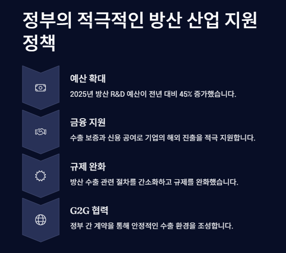 - 2025년 방산 R&D 예산 4조 3,000억 원(전년 대비 +22%)